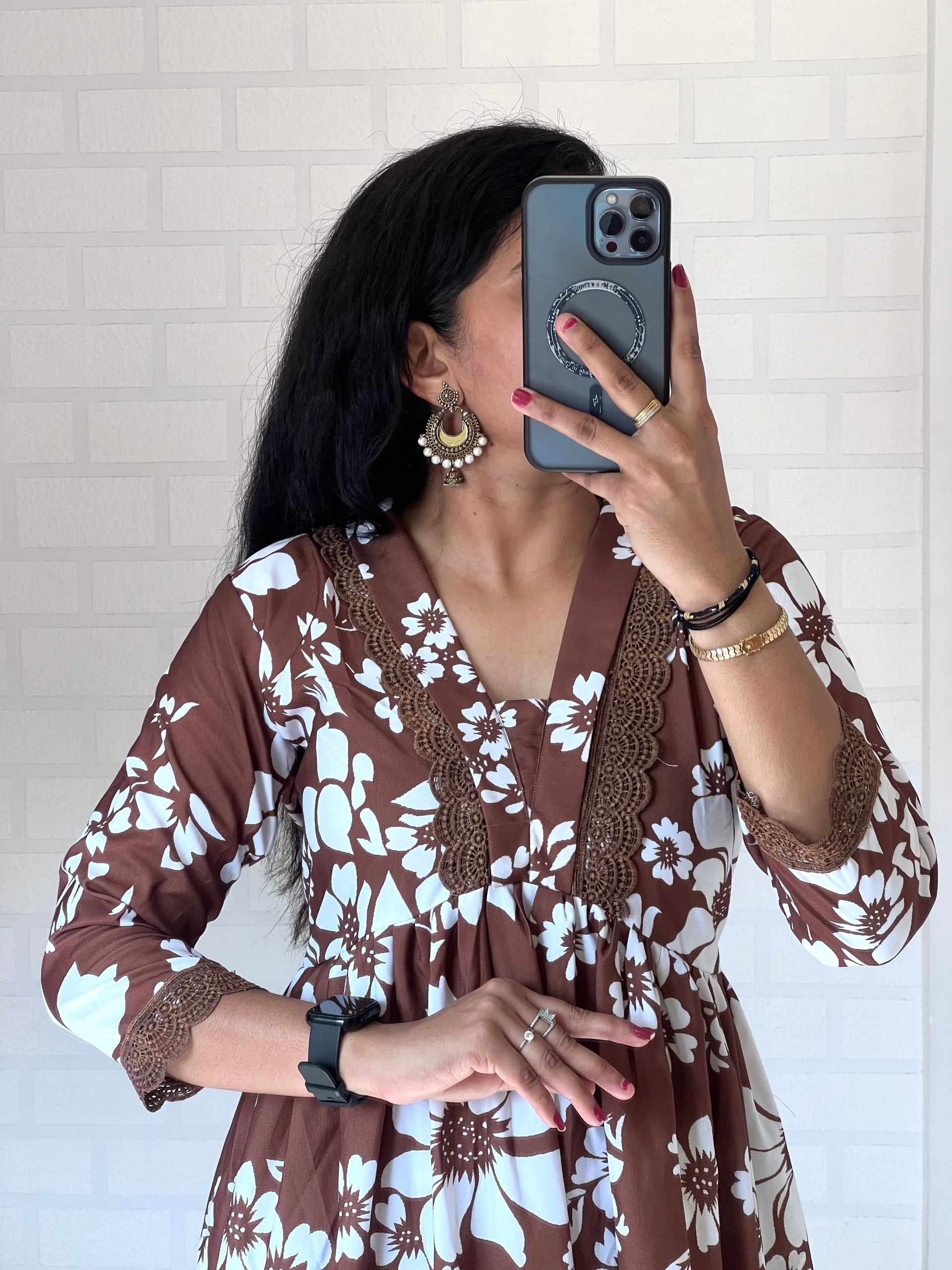 Top Work : Floral Print with Embroidery lace