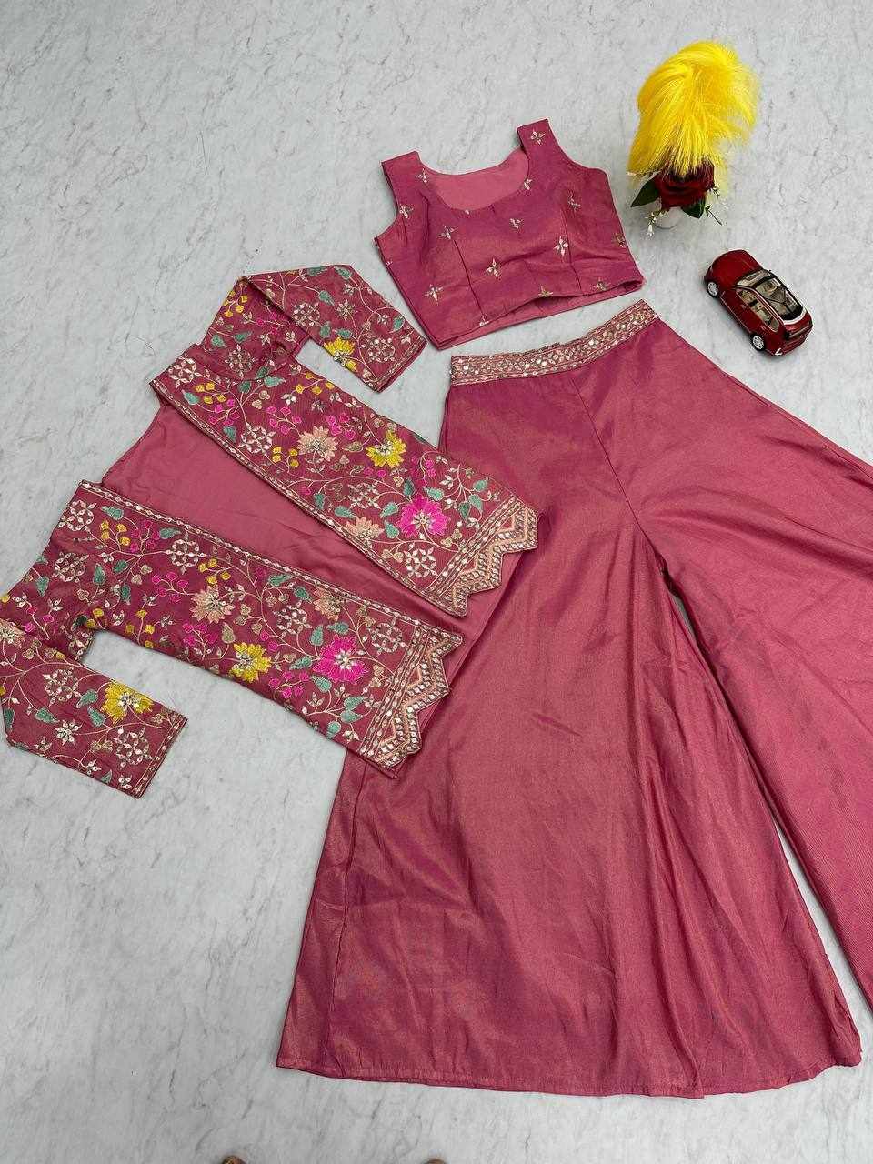 Pc 484 Pink Pure Tissue Simmer Party Wear Dress