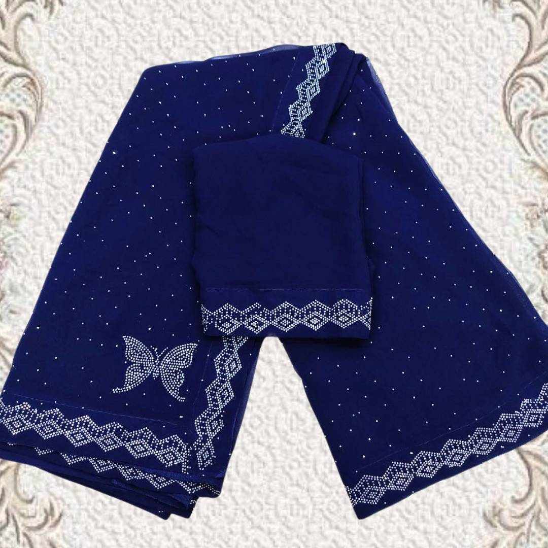 S4s Blue Siroski Butterfly Stones Lace Georgette Party Wear Saree